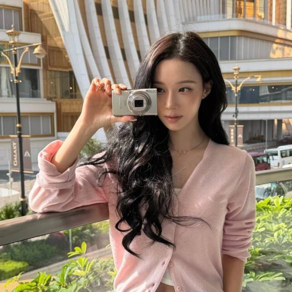 소희의 핑크 룩은 특유의 귀여운 매력이 가득 묻어나요. 깔끔한 베이직 화이트 이너 위에 부드러운 오트밀 컬러의 퍼프 가디건을 걸치고, 따뜻한 질감의 핑크 코듀로이 하의를 매치해 포근하면서도 사랑스러운 감성을 한껏 살렸어요. 전체적으로 소프트한 텍스처들이 어우러져 기분 좋은 봄날의 저녁 약속이나 분위기 있는 다이닝 룩으로 완벽한 스타일링이죠.