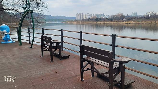 강변 나무들은 아직 민낯입니다. 대신 기운은 봄 쪽으로 기울어 있었습니다. 버드나무 가지가 물 위로 늘어졌습니다. 둔치의 풀빛도 겨울빛을 조금씩 밀어내고 있었습니다. 막 문을 여는 계절이었습니다.