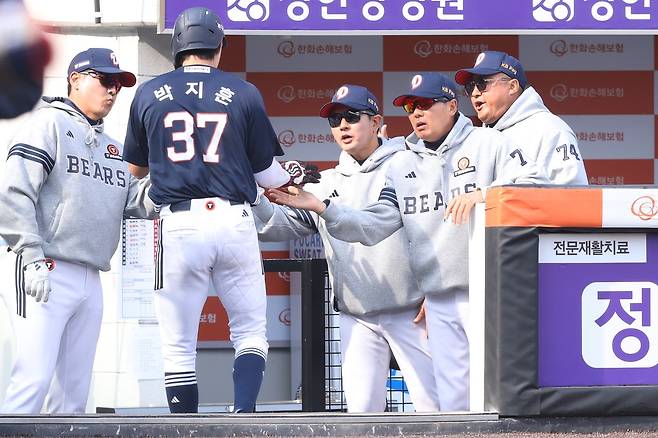 이어 "또 안재석이 빅 이닝의 출발점 역할을 해줬고 강승호, 이유찬, 박지훈 등 젊은 타자들이 꾸준히 좋은 모습 보여주는 것도 칭찬하고 싶다"며 "마운드에서는 이용찬과 박신지, 최지강, 타무라가 나란히 자기 공을 자신 있게 던지며 좋은 결과를 이끌었다"고 덧붙였다.