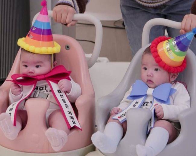 강단둥이남매는 똑같은 고깔 모자를 쓰고 축하 화환처럼 큰 리본을 달고 귀여움을 뽐낸다. 특히 자기 얼굴보다 큰 리본을 앙 물고 빵빵한 볼살을 리본 뒤로 숨긴 단이와 리본이 마음에 든 듯 꼬옥 움켜쥔 채 배시시 웃는 강이의 모습이 앙증맞은 매력을 뿜어낸다. 강이는 “생일 축하드려요. 꽃 대신 제가 왔어요”라고 적힌 문구를, 단이는 “아빠 사랑해요. 선물은 저예요”라는 문구를 달고 아빠에게 축하의 눈빛을 보내 랜선 이모, 삼촌들을 심쿵하게 만든다.