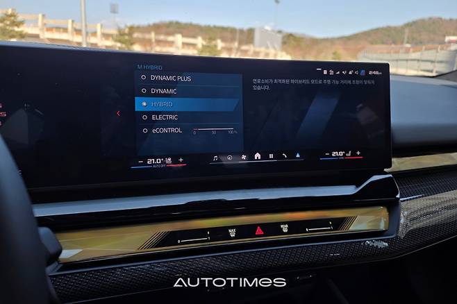 주행가능거리가 여유롭다면 일렉트릭 모드에 두어도 좋다. 전기차 코스프레 하면서 기름 한 방울 쓰지 않고 경제적인 드라이빙이 가능하다. 심지어 e-컨트롤을 활용해 남은 배터리 양을 묶어 두는 것도 가능하다. 이처럼 활용도가 높아진 M카라는 사실이 무척 반가워지는 순간이다.