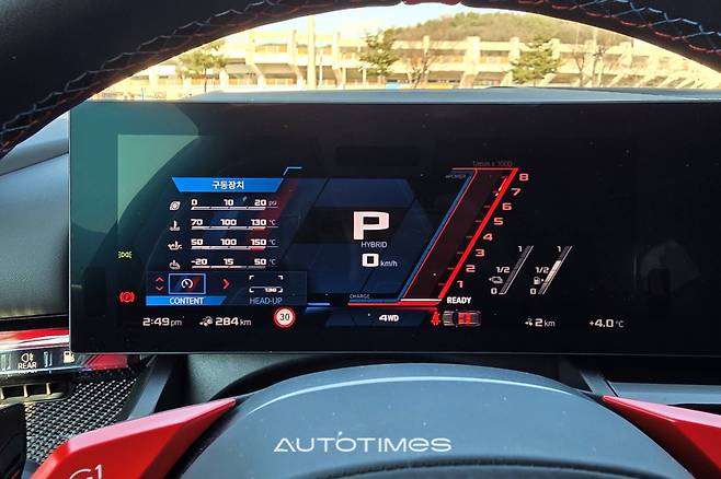 이 상태에서 M모드를 눌러 별도의 스포츠로 돌리면 더욱 강력한 성격을 경험할 수 있다. 참고로 M모드에는 로드와 스포츠, 트랙으로 나뉘는데 로드는 일반적인 주행 상황에서 활용할 수 있고 스포츠는 주행 보조장치 개입을 최소화한다. 트랙 모드는 온전히 트랙에서만 사용하는 것을 추천한다. 날 것 그대로의 세팅으로 바뀌기 때문이다.