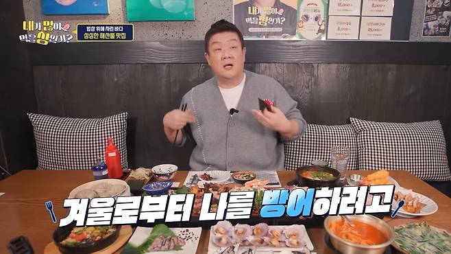 유민상은 대구의 해산물 코스 요리 식당을 방문했다. 숙성회와 홍해삼, 소라, 멍게, 전복, 굴 등 다양한 해산물이 한 상 가득 차려졌고, 유민상은 연이어 맛을 보며 "다 싱싱하다"고 감탄을 이어갔다. 특히 제철 방어를 맛본 뒤에는 "녹아버리네, 제철이니까 빨리 달려가시라"며 경탄했다. 이어 "왜 방어겠냐, 겨울에 나를 방어하기 위해 방어"라며 말장난을 던졌다. 그는 "이래서 내가 코미디를 떠났어. 먹방만 하려고. 더 이상 사람을 못 웃기겠어"라고 특유의 너스레를 떨어 웃음을 자아냈다. 사장님이 추천한 방어 한 쌈(방어·백김치·김)이 유민상의 한입 픽으로 선택됐다.