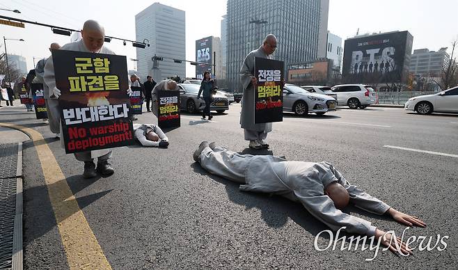 | ▲ [오마이포토] 군함파견을 반대한다! 전쟁과 살생을 멈춰라! 평화를 위한 오체투지 |