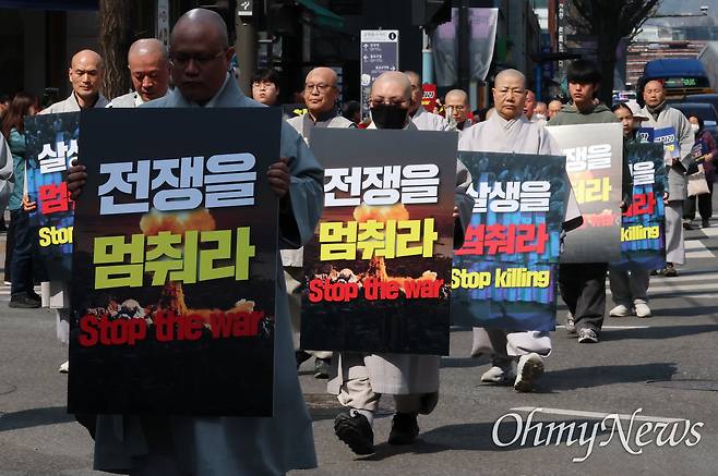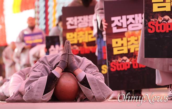 스님들과 참석자들은 "오체투지는 현재 중동지역에서 일어나고 있는 참혹한 전쟁의 살생을 당장 멈추기를 호소하는 기도"라며 "서로에 대한 증오와 분노, 적개심과 더불어 살의(殺意)의 마음을 내려놓기를 바라는 간절하고 또 간절한 마음"이라고 밝혔다.