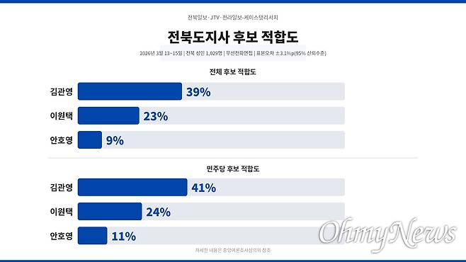- 2026년 3월 13~15일 전북 성인 1029명 무선전화면접. 표본오차 ±3.1%p(95% 신뢰수준)