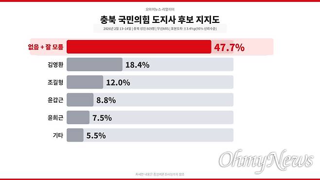 2. 오마이뉴스-리얼미터 - 2026년 2월 13~14일 충북 성인 809명 무선ARS. 표본오차 ±3.4%p(95% 신뢰수준)