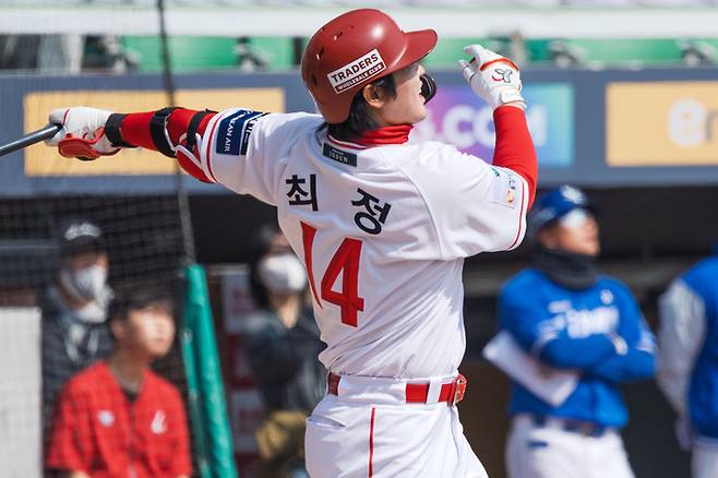 최정의 활약이 눈부셨다. 1회말 1사 1루 상황에서 타석에 들어선 최정은 삼성 좌완 선발 이승민의 체인지업을 받아쳐 왼쪽 담장을 넘기는 선제 투런 홈런을 때려냈다. 이번 시범경기 최정의 첫 홈런이었다.