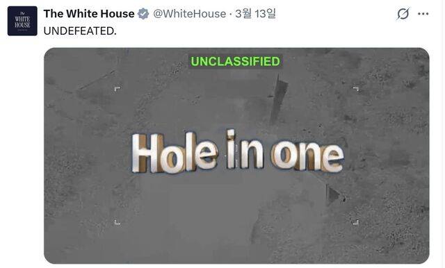 백악관은 지난 13일(현지시간) 엑스에 닌텐도 위(Wii) 게임 장면과 폭격 장면을 교차 편집한 영상을 올렸다. 게임 속 캐릭터가 야구에서 홈런을 치거나 골프 중 홀인원을 기록하는 순간 폭탄이 터지는 것처럼 편집했다.