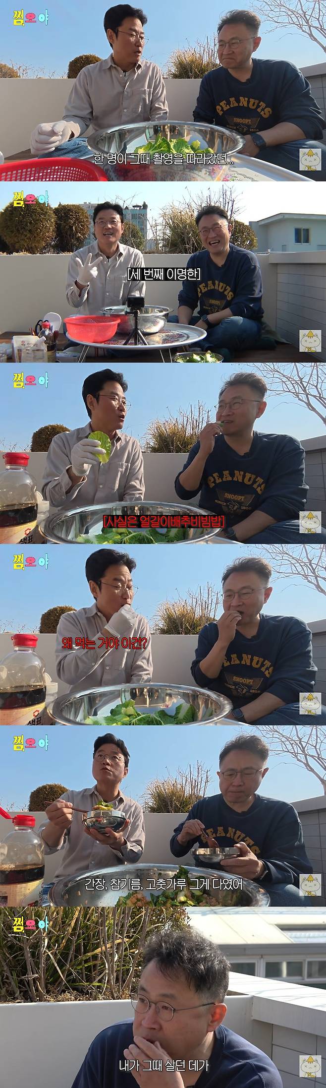 이후 두 사람은 당시 ‘1박 2일’에서 할머니가 만들었던 레시피 그대로 봄동 비빔밥 재현에 나섰다. 이명한 PD는 “촬영 당시 몰입도가 장난 아니었다. 너무 진지했다”고 떠올렸고, 나영석 PD 역시 “정말 맛있었다”고 공감했다.