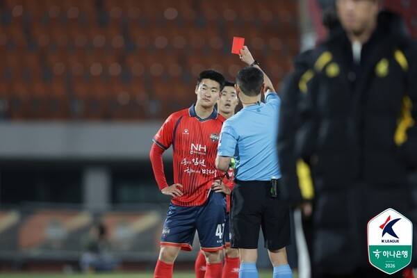 전반 6분 큰 변수가 생겼다. 이상헌이 안혁주와 볼 경합 과정에서 발 높이 들어 그의 정강이를 가격했다. 첫 판정은 경고였으나 온 필드 리뷰(VAR) 끝에 퇴장으로 바뀌었다. 김천은 수적 열세를 안고 뛰어야 했다.