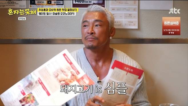 추성훈은 한국인에게 인기 있는 메뉴 1위인 '마 오코노미야키'와 '돼지 오코노미야키'를 주문하며 "기본은 돼지"라고 강조했다.