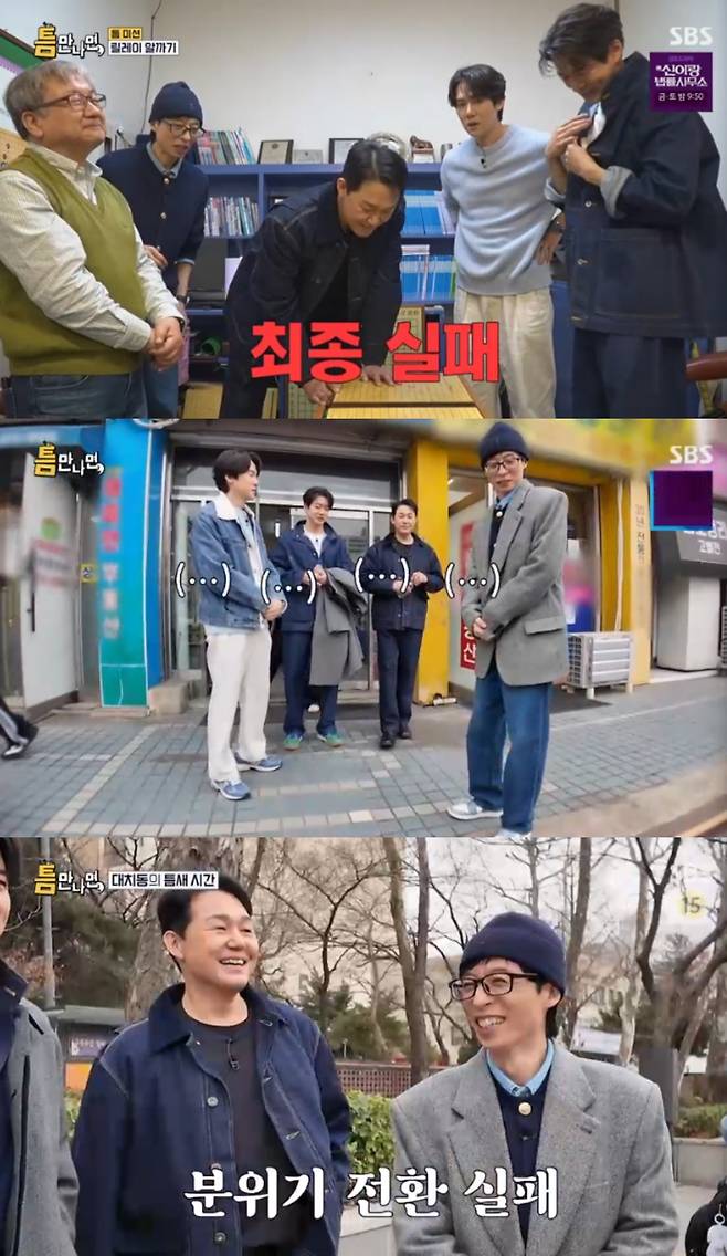 '틈만 나면'에서 박성웅과 이상윤이 미션에 실패하며 좌절했다.