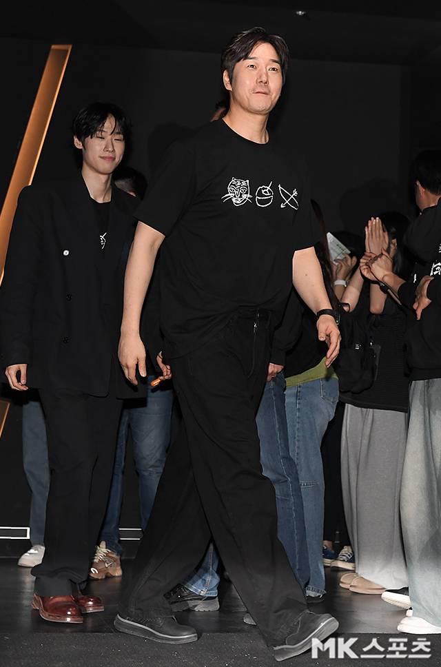 이날 현장에 등장한 유지태는 단번에 시선을 끌었다. 함께 자리한 배우 유해진, 박지훈, 전미도 사이에서도 단연 돋보이는 체격으로, 마치 한 장면처럼 ‘체급 차이’를 느끼게 했다.