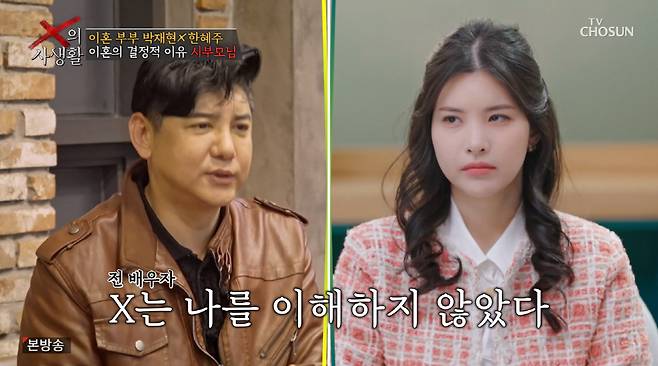 17일 첫 방송된 이혼 부부들의 입장 정리 리얼리티 TV CHOSUN 'X의 사생활'에서는 연기자 박재현의 16세 연하 'X(전처)' 한혜주가 출연해 모두가 경악할 이혼 스토리를 풀어냈다.