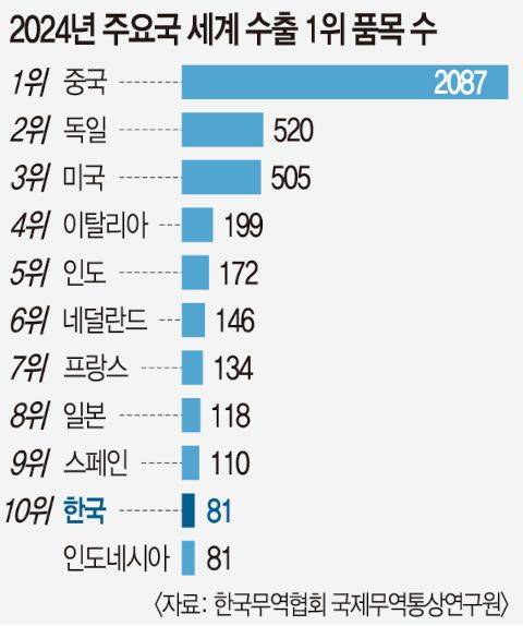 한국의 수출 1위 품목 81개 중 20개는 2024년에 새로 등극한 것이다.