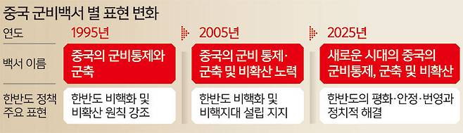 2025년 말 발표된 ‘신시대 중국의 군비 통제·군축 및 비확산 백서’(군비백서)에는 ‘한반도 비핵화’ 표현이 등장하지 않는다. 이번 군비백서는 1995년과 2005년에 이어 20년 만에 나온 세 번째 보고서로, 앞선 두 보고서가 10년 간격으로 발간된 것과 달리 발표 시점 자체가 전략적으로 고려됐다는 점에서도 관심을 모았다.