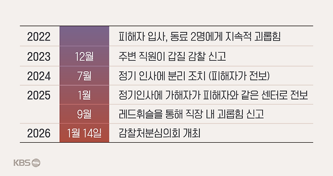 이러한 괴롭힘은 4년 넘게 이어졌고, 결국 김 씨는 신고 시스템인 '레드휘슬'의 문을 두드렸습니다.