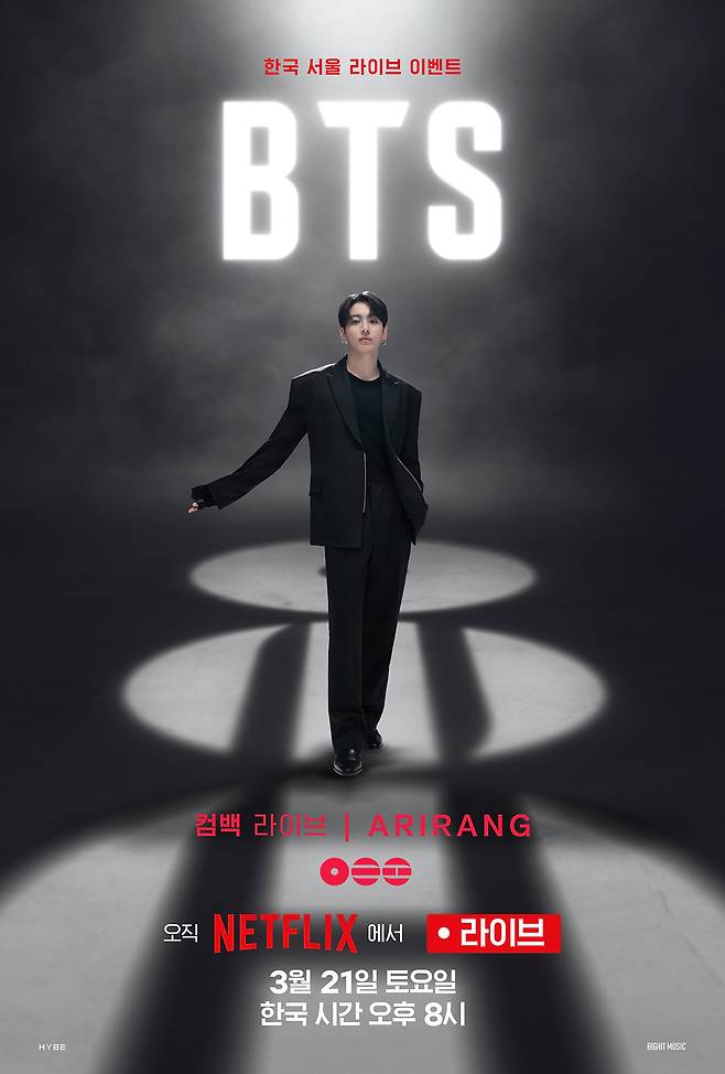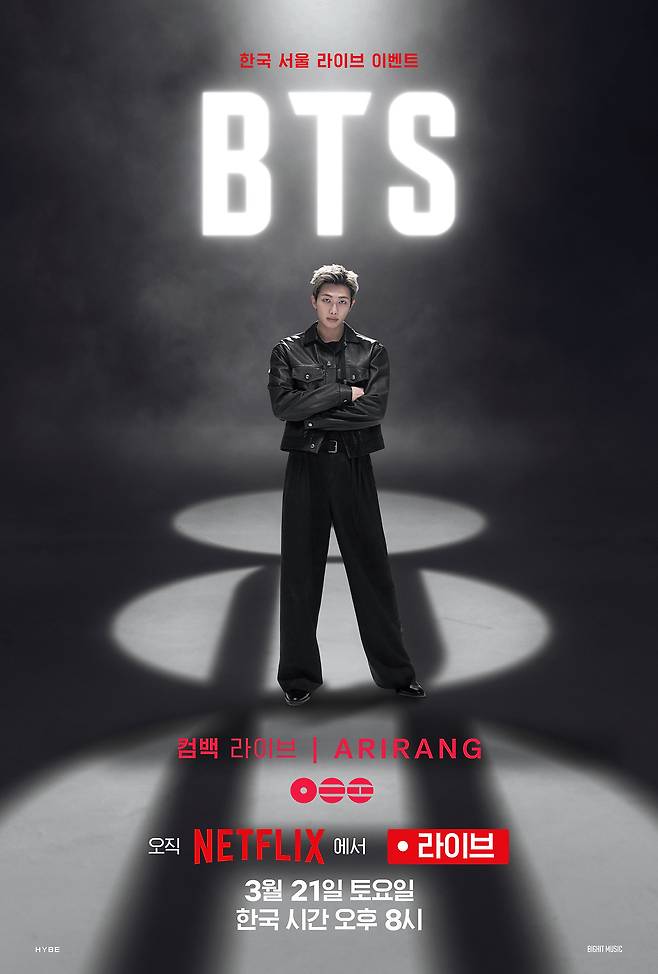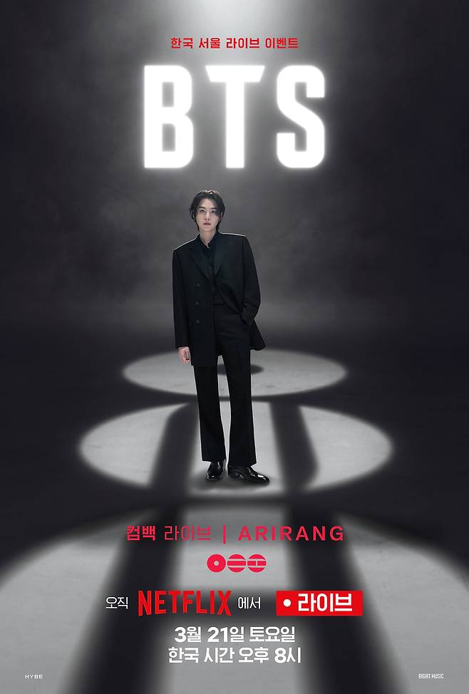 넷플릭스가 ‘BTS 컴백 라이브: ARIRANG’을 앞두고 방탄소년단 일곱 멤버의 솔로 포스터를 공개했다.