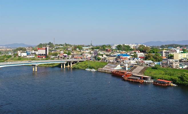 | ▲ 문순태 작가가 날마다 보고 걷는 영산강변과 영산포 풍경. '타오르는강문학관'이 이곳 영산포에 자리하고 있다. |