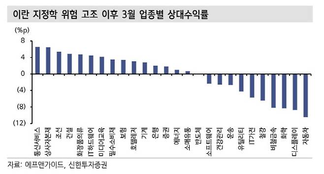 노동길 신한투자증권 연구원은 18일 보고서에서 “충격의 핵심은 강도가 아니라 지속 기간”이라며 “시장이 단기전 기대를 유지하는 동안에는 버틸 수 있지만 전쟁이 길어질수록 에너지 비용 충격은 기대인플레이션과 물가, 정책 경로를 따라 뒤늦게 부담을 줄 수 있다”고 밝혔다.