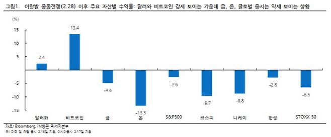 양현경 iM증권 디지털자산 애널리스트는 18일 보고서를 통해 “중동지역에서의 지정학적 긴장감이 고조된 이후 글로벌 자산시장은 전통적인 위험회피 국면과는 다소 차별화된 흐름을 보이고 있다”며 이 같이 밝혔다.