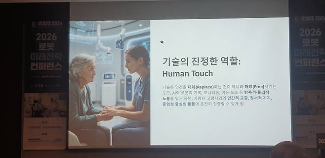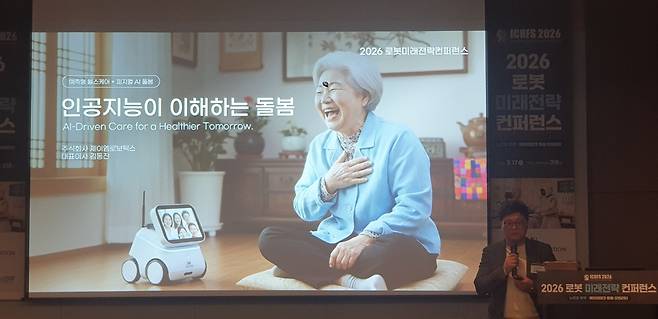 이어 "AI 에이전트는 일상 데이터를 분석해 위험을 사전에 예측하는 예방 케어의 출발점"이라며 "체화 인공지능(Embodied AI) 로봇이 현장의 돌봄 공백을 메우며, 로봇은 단순 기계를 넘어 인간의 삶을 함께하는 동반자로 진화해야 한다"고 주장했다.