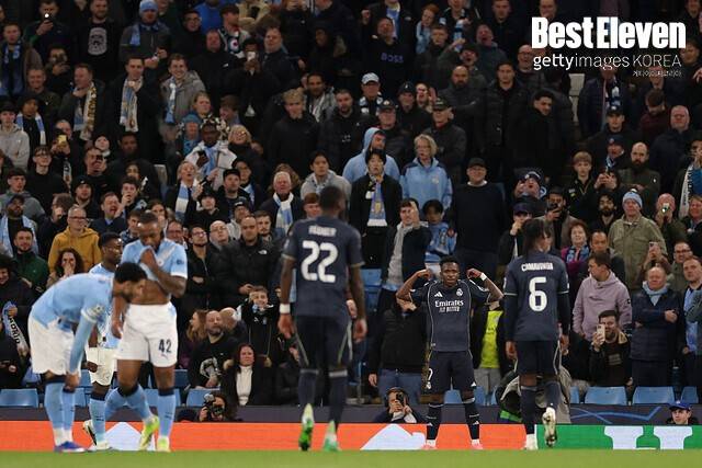 영국 매체 <미러>에 따르면 비니시우스는 페널티킥으로 선제골을 넣은 뒤 원정 팬들에게 먼저 달려가 세리머니를 펼쳤고, 이어 맨체스터 시티 홈 관중석을 향해 '울어라'라는 제스처와 함께 자신의 등번호를 가리키는 행동을 보였다.
