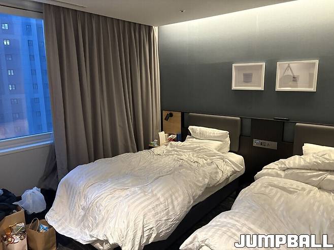 객실은 약 7평 정도의 크기다. 한 사람의 짐만 들어가도 꽉 차는 공간에, 장신 선수 두 명의 짐이 들어가 있다. 옷부터 시작해서 이들의 생활용품들로 채워졌으니… 발 디딜 틈이 부족해 보이기도 했다. 그러나 신지원은 “좁아 보여도 지내기 아주 좋아요. 고등학교 때나 대학교 때를 생각해 보면, 지금의 방은 ‘격세지감’이라는 단어가 어울립니다”라고 말했다. 기숙사에서 5성급 호텔로 거주지가 바뀌었으니, 100% 공감하고 넘어갈 수 있었던 대목이다.