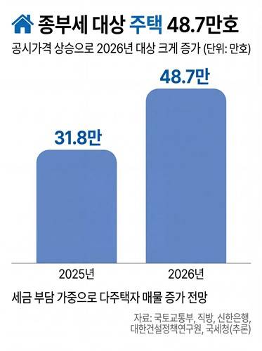 이번 발표로 공시가격이 12억원을 초과해 종합부동산세(종부세) 대상이 된 주택은 전국 기준 48만7천362호로 집계됐다. 전년(31만7천998호)보다 53.25% 증가한 수치다.