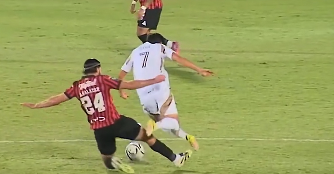 사건은 후반 초반 벌어졌다. 재개 3분여가 지난 시점 하프라인에서 볼을 잡은 손흥민이 역습을 시도하는 순간 그대로 그라운드에 나뒹굴었다. 아론 살라자르가 오른발을 향해 깊게 들어온 태클이 원인이었다.