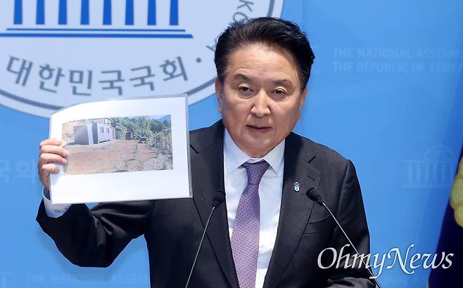 | ▲ 김영환 충북도지사가 18일 오전 서울 여의도 국회 소통관에서 기자회견을 열어 국민의힘 충북지사 공천 컷오프(공천 배제) 통보와 경찰의 금전 수수 혐의 관련 구속영장 신청에 대해 “표적수사이자 정치탄압이다”라며 입장을 밝히고 있다. |
