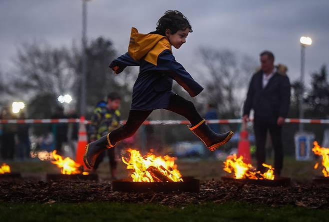 [웨스트밴쿠버=AP/뉴시스] 17일(현지 시간) 캐나다 브리티시컬럼비아주 웨스트밴쿠버 앰블사이드 공원에서 페르시아 설 '노루즈'를 기념하는 불 축제가 열려 한 소년이 불 위를 뛰어넘고 있다. 이란계 캐나다인 의회 BC 지부가 주최한 이 행사 참가자들은 라이브 음악 공연과 춤, 음식 등을 즐기고, 다가오는 한 해의 건강과 행운을 상징하는 전통인 ‘불 뛰어넘기’ 행사에 함께했다. 2026.03.18.