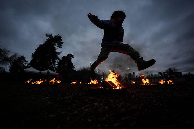 [웨스트밴쿠버=AP/뉴시스] 17일(현지 시간) 캐나다 브리티시컬럼비아주 웨스트밴쿠버 앰블사이드 공원에서 페르시아 설 '노루즈'를 기념하는 불 축제가 열려 한 소년이 불 위를 뛰어넘고 있다. 이란계 캐나다인 의회 BC 지부가 주최한 이 행사 참가자들은 라이브 음악 공연과 춤, 음식 등을 즐기고, 다가오는 한 해의 건강과 행운을 상징하는 전통인 ‘불 뛰어넘기’ 행사에 함께했다. 2026.03.18.