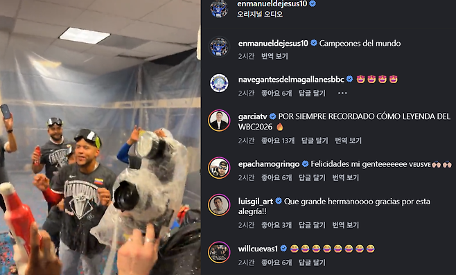 (엑스포츠뉴스 김지수 기자) 2026 월드베이스볼클래식(WBC)에서 인생 역전을 이뤄낸 엔마누엘 데 헤이수스가 자신의 SNS를 통해 우승의 기쁨을 표출했다.
