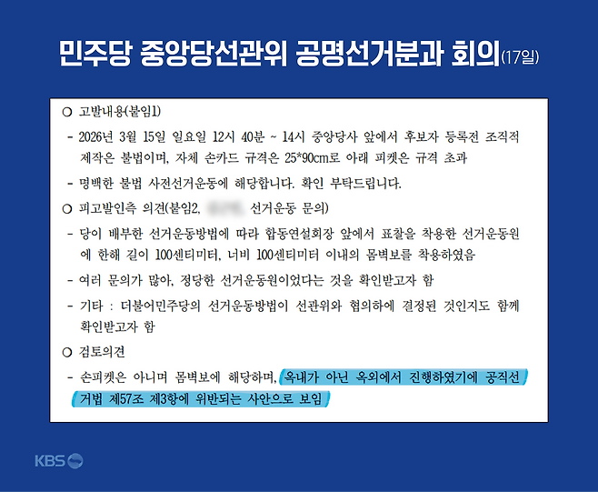 ■ 민주당 선관위 공명선거분과 "공직선거법 위반 의견"