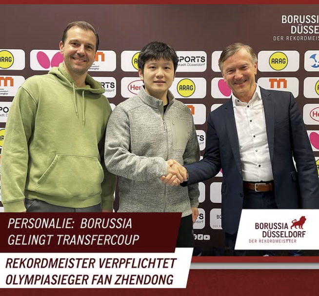 2024 파리 하계올림픽 남자단식, 남자단체전에서 2관왕을 차지했던 '탁구 황제' 판전둥이 분데스리가 자르브뤼켄에서 뒤셀도르프로 이적한 것이다.