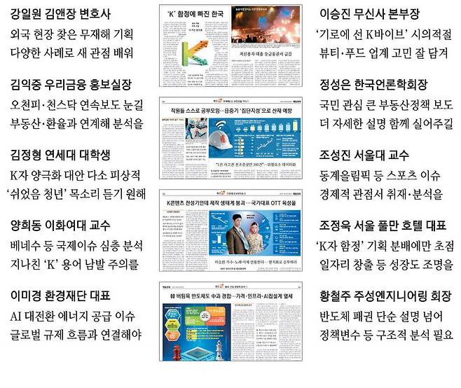 'AI 대전환 기획과 AI시대' 연속보도는 생산성 혁명에 따른 일자리 변화가 예견되는 상황에서, 기존 직무에서 진화된 방식으로 창업에서 새로운 기회를 찾는 사람들의 이야기로 유익했다고 생각한다. 그 외에 '기로에 선 K바이브' 기획은 K바이브의 건강한 성장을 위해 각계가 어떤 고민을 해야 하는지와 가격 정책, 정부 참여 등을 제시한 것이 매우 시의적절했다. 실제로 현장에서 푸드, 뷰티, 콘텐츠 등 K컬처에 대한 기대감이 높아지고 있음을 실감하기에 공감대가 컸던 것 같다.