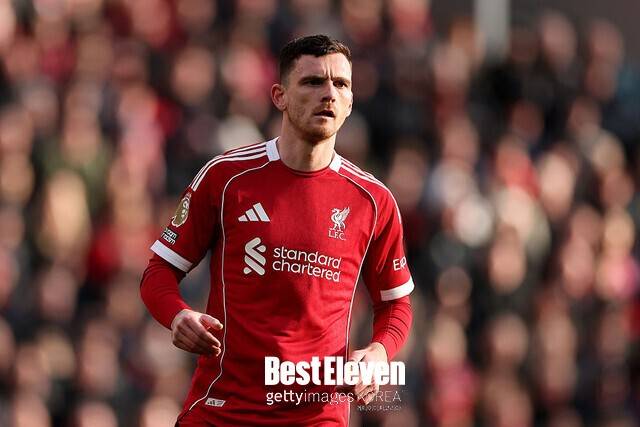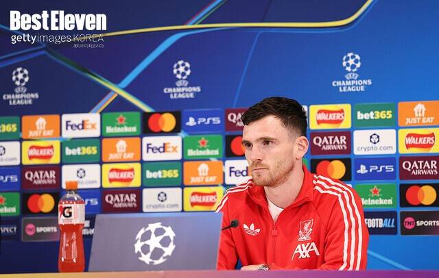 로버트슨이 속한 리버풀은 19일 새벽 5시(한국 시각) 안필드에서 열리는 2025-2026 UEFA 챔피언스리그 16강 2차전에서 갈라타사라이와 맞붙는다. 영국 매체 <미러>에 따르면 로버트슨은 경기 전 기자회견에 선수단 대표로 나서 아르네 슬롯 감독과 함께 취재진을 만났다.
