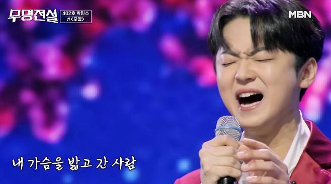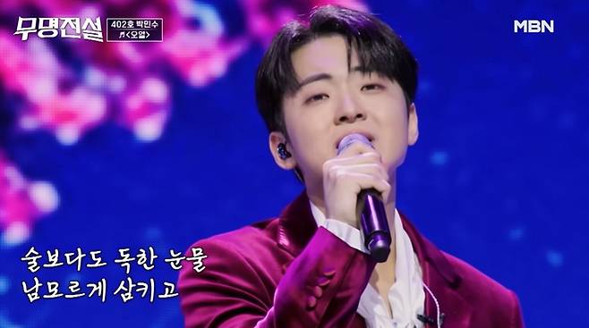 MBN '무명전설'에서 유명 도전자로 출연 중인 가수 박민수는 지난 주 방송된 '유명 선발전'에서 강진의 '오열' 무대를 선보였다.
