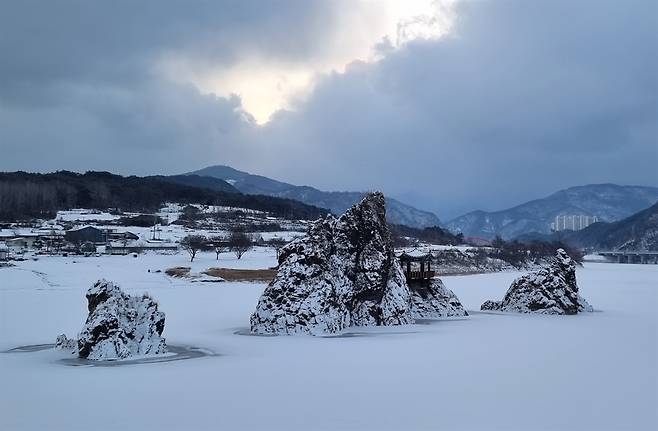 | ▲ 겨울의 도담삼봉 2022.12.22. 설경 속에서 고요하게 자리를 지키는 삼봉. |