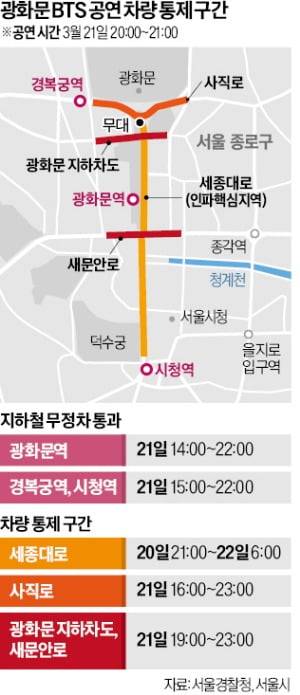 BTS 공연, 세종대로 20일 밤부터 車 못 다닌다