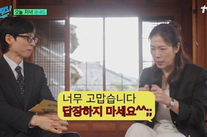 유재석이 "박찬욱 감독님께 답장 보냈냐"라고 묻자, 염혜란은 "그렇다. 답장을 보냈는데"라며 자신의 고민을 털어놨다.