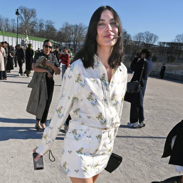 알렉사 청은 플라워 패턴을 훨씬 더 자연스럽고 데일리하게 풀어냈습니다. 화이트 베이스에 은은한 플라워 패턴이 더해진 셔츠 드레스를 선택해 전체적으로 깨끗하고 산뜻한 분위기를 만들었죠. 패턴이 화려하기보다는 자연스럽게 퍼져 있어 과하지 않고 은은한, 봄 특유의 가벼운 무드를 잘 살려줬어요. 상∙하의 같은 패턴을 매치했지만, 짧은 기장의 미니스커트로 전체적인 밸런스를 잡았습니다. 여기에 블랙 스트랩 힐은 룩의 화사함을 유지하면서도 고급스러워 보일 수 있도록 중심을 잡아주는 역할을 해줬어요.