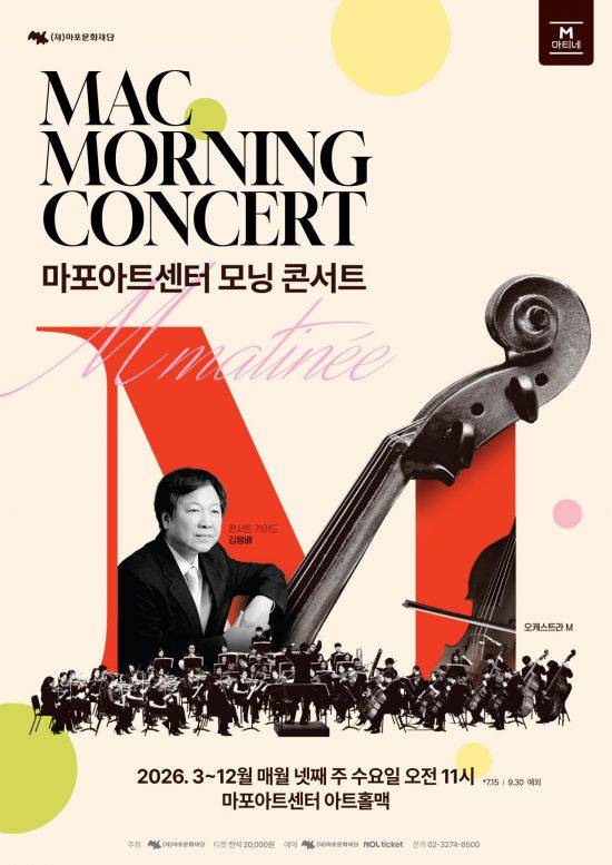 마포문화재단은 올해 3월부터 12월까지 매월 네 번째 수요일 오전 11시에 '맥모닝 콘서트'라는 이름으로 총 10회의 마티네 공연을 마련한다.