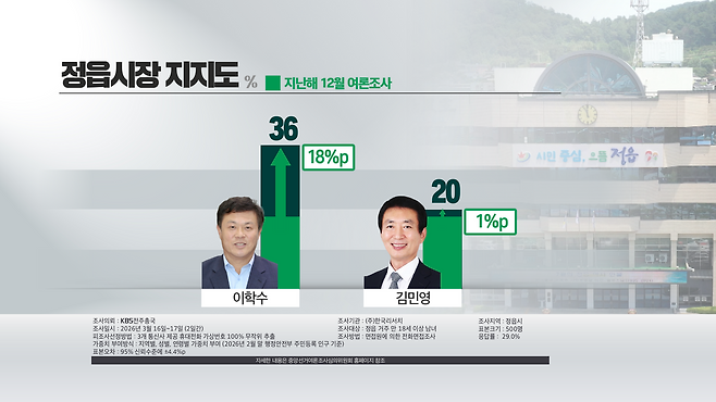 [KBS 전주]■ 정읍시장 이학수 36%·김민영 20% 순