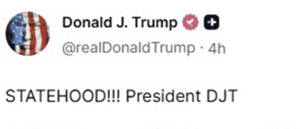 트럼프 대통령은 “정말 멋진 경기력을 보여주고 있다. 요즘 베네수엘라에 좋은 일이 일어나고 있다”며 “이 마법 같은 현상의 비결이 뭘까? 미국의 51번째 주로 승격되는 거 아닐까?”라고 적었다.