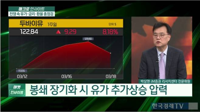 이어 "유가를 유종별로 분리해 볼 필요가 있다"며 "WTI(서부 텍사스산 원유)는 호르무즈 봉쇄 리스크에서 상대적으로 피해가 적은 반면, 두바이산 유가는 현재 130달러 수준을 유지하고 있어 리스크가 충분히 해소됐다고 보기 어렵다"고 전망했다.
