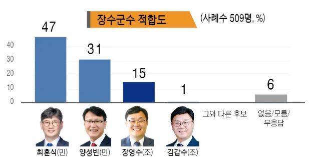 [여론조사 : 장수군수] 최훈식 47% 선두…양성빈 31%·장영수 15%