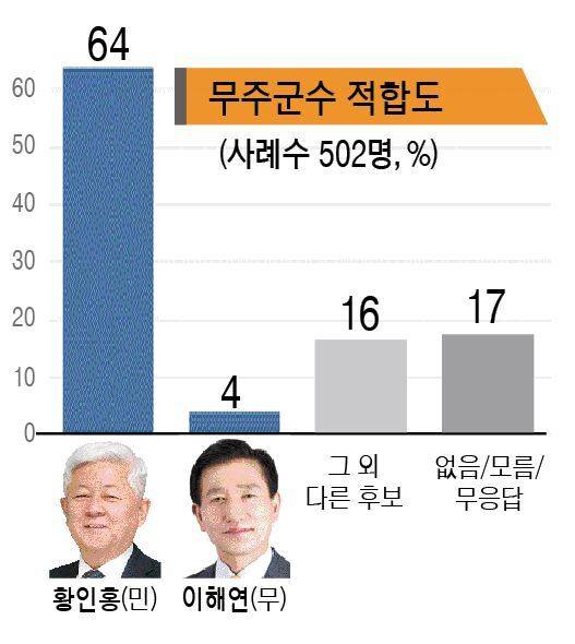 [여론조사 : 무주군수] 황인홍 64% 1위… ‘독주 체제’
